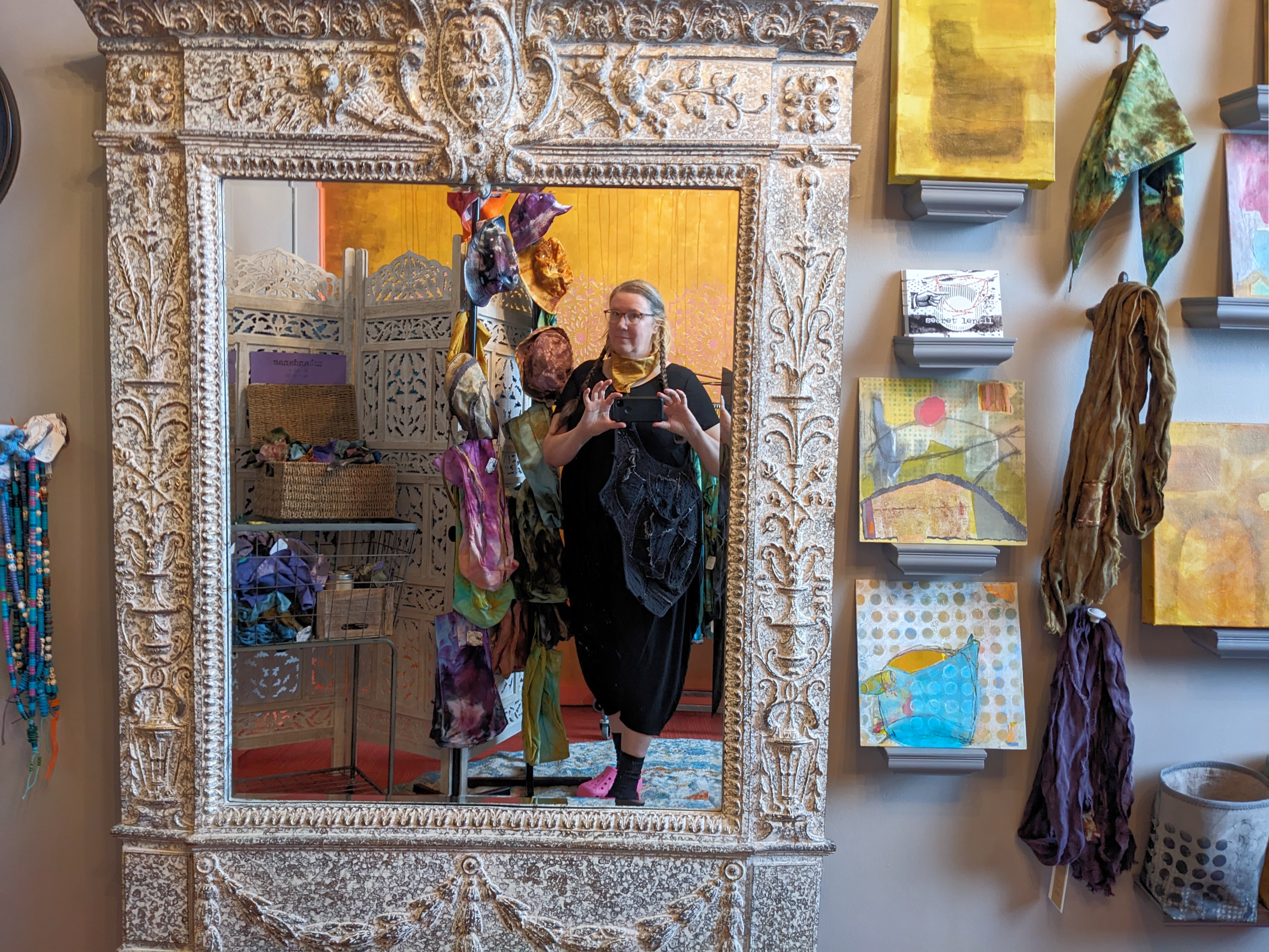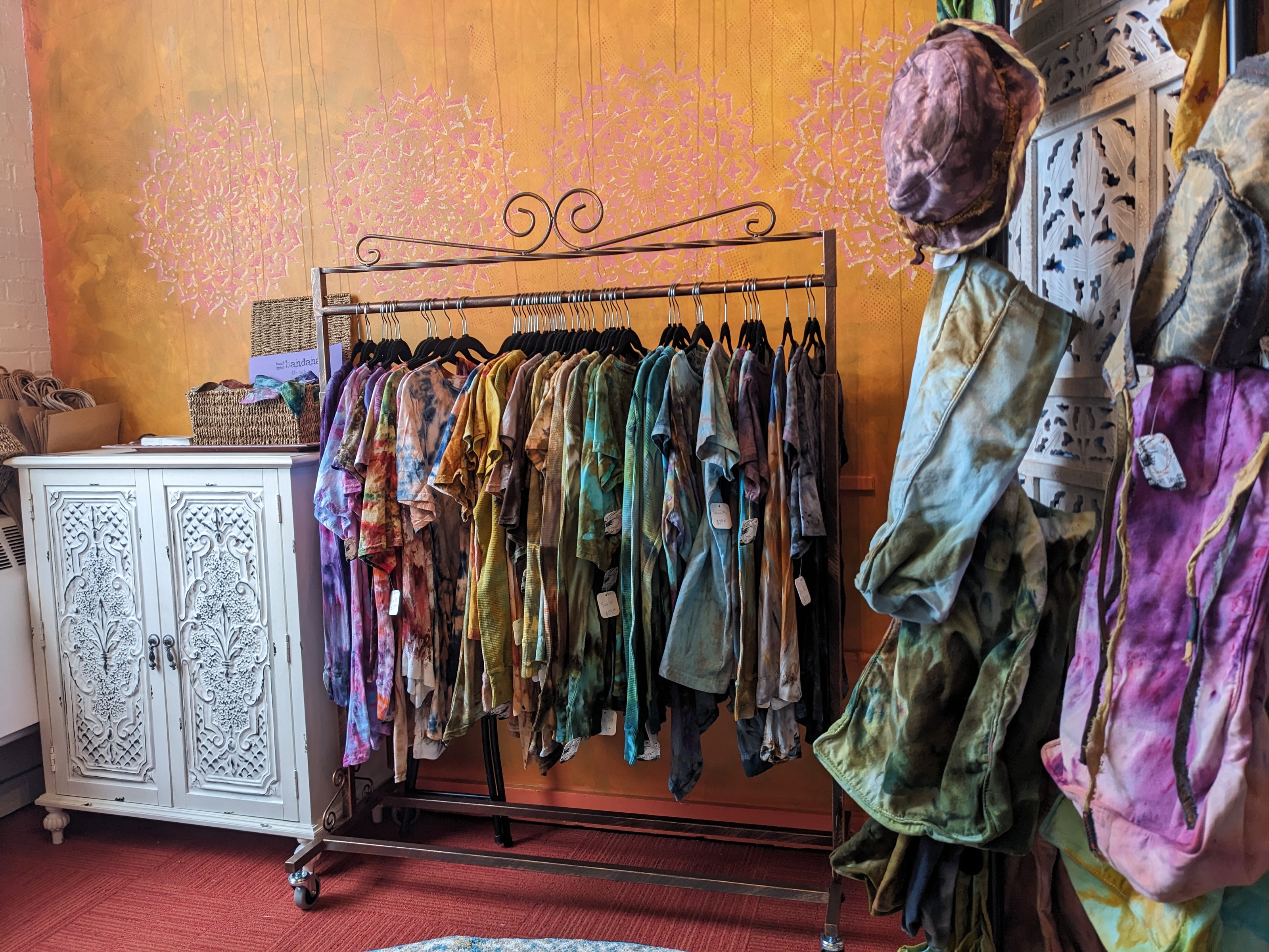 Right now I have my hand BUILT clothing plus hand DYED set up there. Also my paintings, other trinkety lovelies and a bargain bin full of tidbits and oddities.