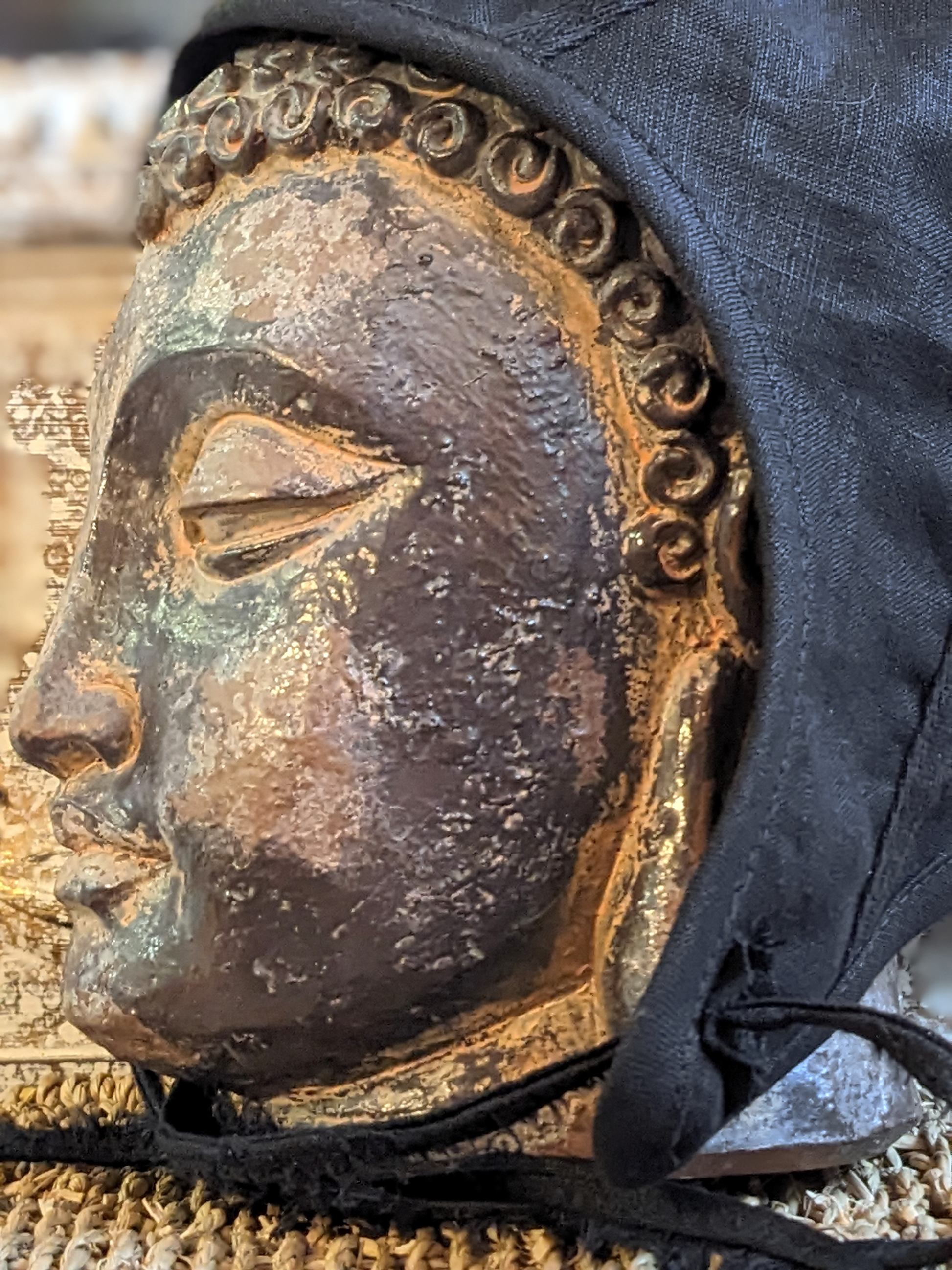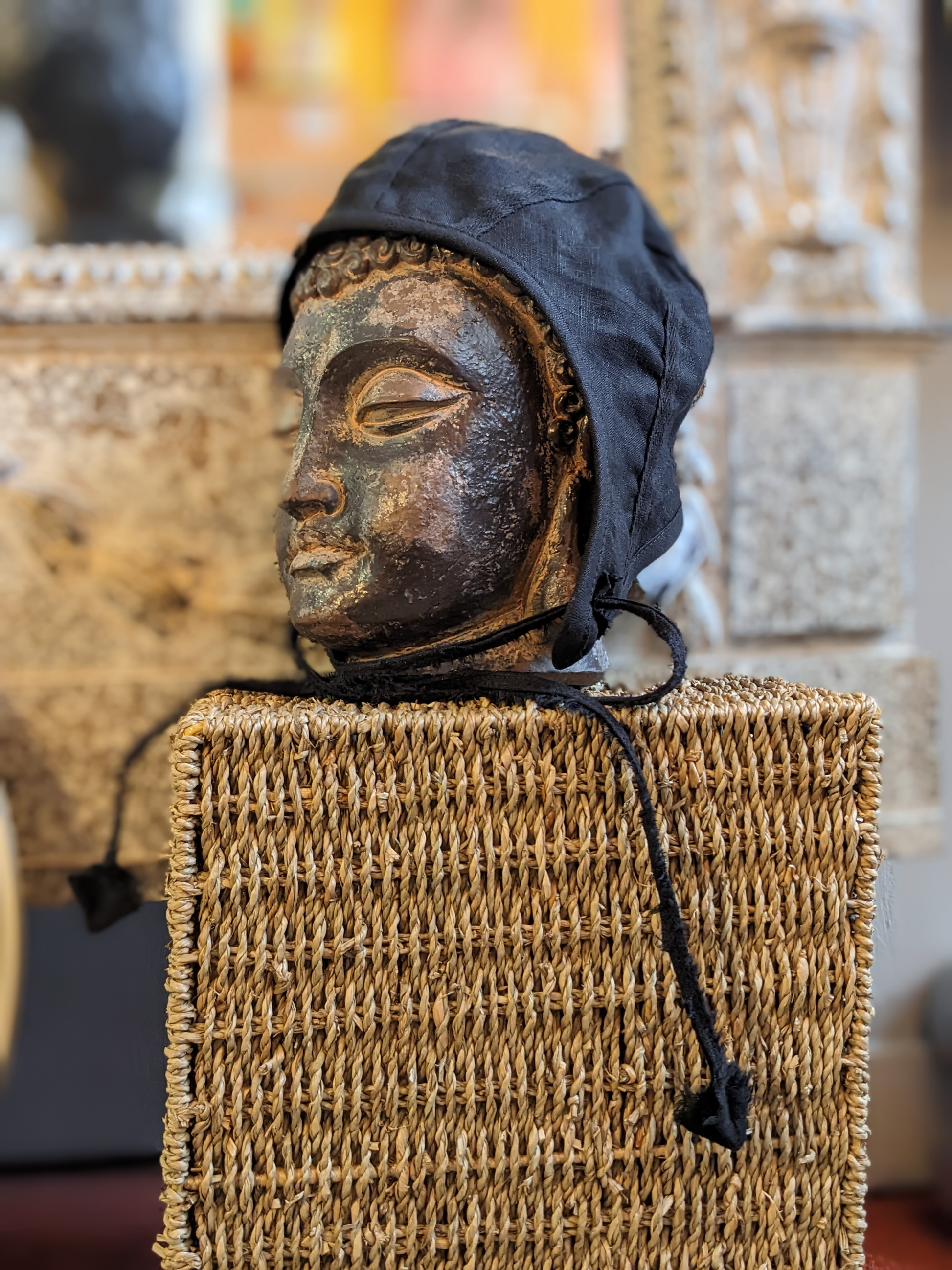 Please note that the Buddha has a permanenet manbun on the back of his head which is why the hat looks kind of crumply on the pictures of the back. It won't do that on your head. Which is not to say you are not the Buddha.